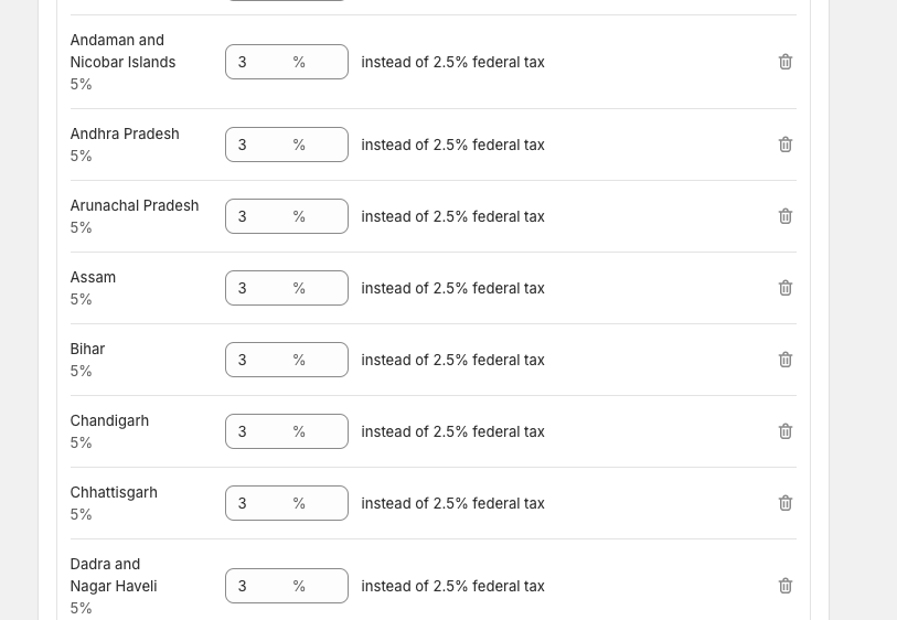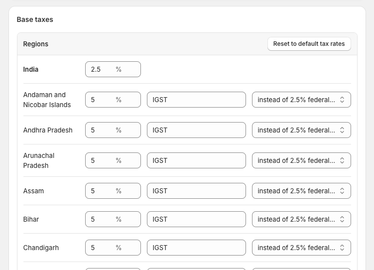When you enter the value for your state, Shopify may display it as if the percentage is being added on top of India’s default percentage.