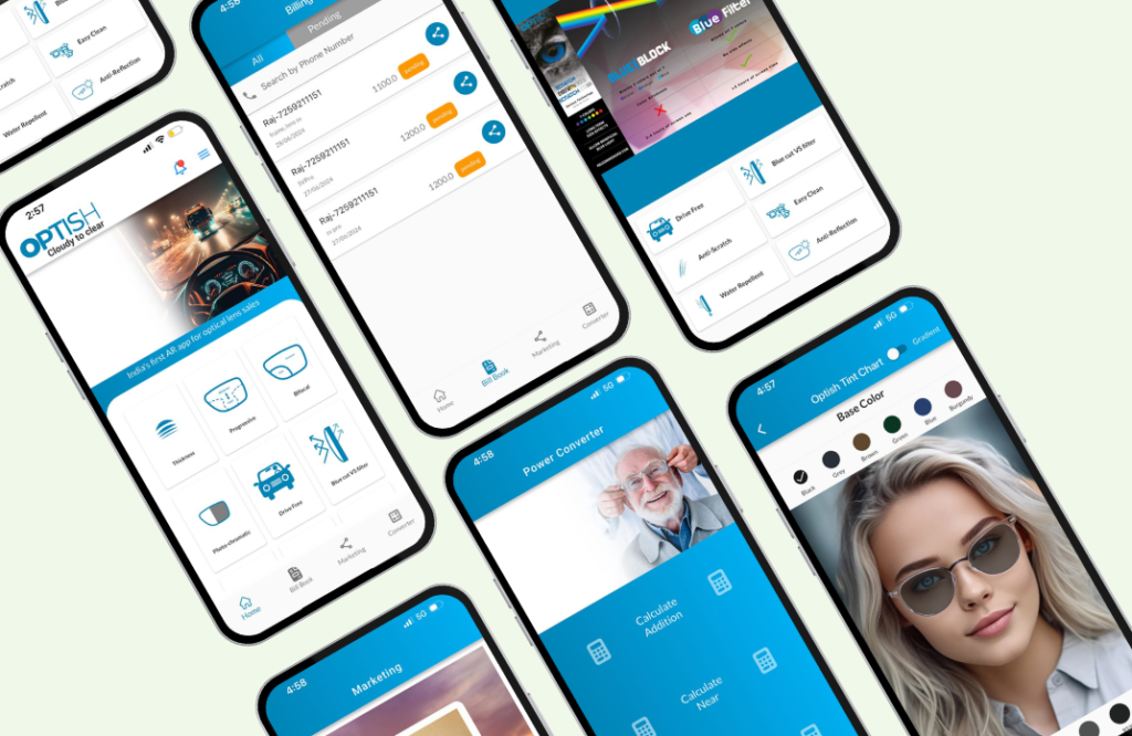 required a custom app to educate customers, boost upselling, and streamline operations for retailers with features like bill generation, lens power conversion, etc.